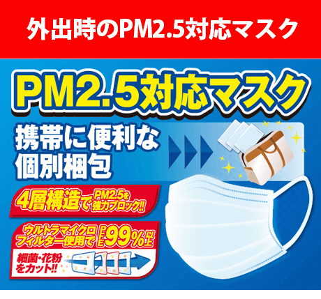 PM2.5の微粒子を99%以上カットする高性能マスクです。